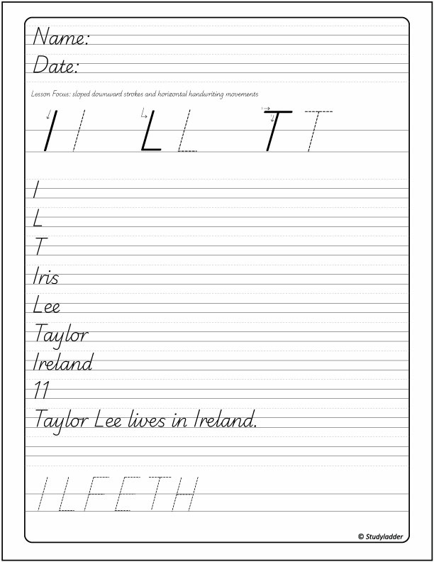 Downward and Cross Strokes Letters: I, L and T
