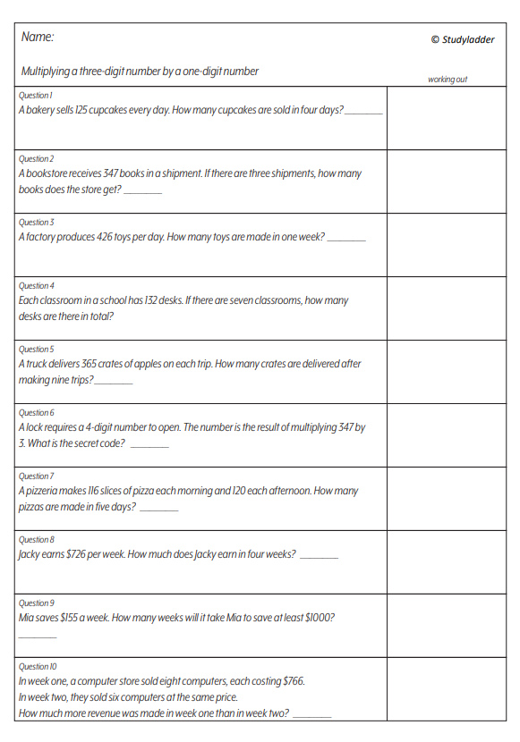 Multiplying a three-digit number by a one-digit number (problem solving)