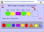 Samples: Repeating patterns. Continue image patterns. Recognizing and continuing shape patterns.