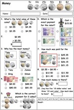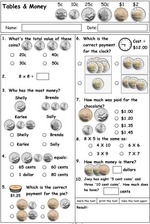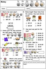 Samples: Challenge puzzle. Ordering large numbers No:1. Large numbers presented in tables. Paying for goods.