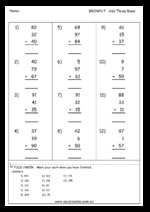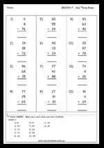 Samples: Adding large numbers (problem solving). Addition of large numbers (puzzle). Subtraction - missing number.