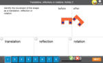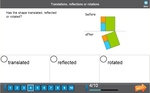 Samples: Identify transformations - pictures. Identify line of symmetry. Rotational symmetry - shapes.
