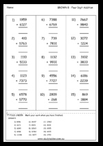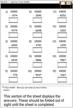 Samples: Addition of four digit numbers. Subtracting large numbers. Subtracting from lots of 1000. Adding-on to make 1000.