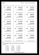 Samples: Balancing equations Addition of larger numbers. Two step problem solving (addition and subtraction).