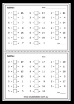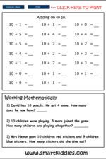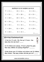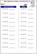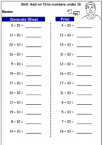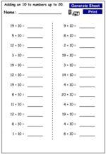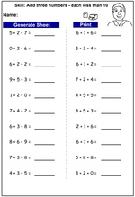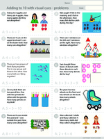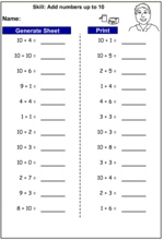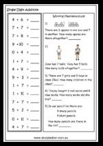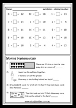 Samples: Adding by counting (printable). Adding on to ten. Adding single digit numbers.