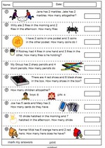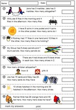 1.OA.1 – Use addition and subtraction within 20 to solve word problems involving situations of adding to, taking from, putting together, taking apart, and comparing, with unknowns in all positions, e.g., by using objects, drawings, and equations with a symbol for the unknown number to represent the problem. (See Glossary, Table 1. http://www.corestandards.org/the-standards/mathematics/glossary/glossary/ )