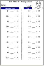 - Addition to 20 - with visual cues