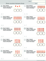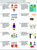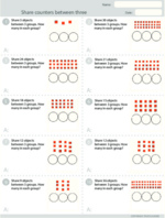 Samples: Sharing equally. Dividing by 2. Dividing by 2 (problem solving). Using the division symbol. Dividing by 3.