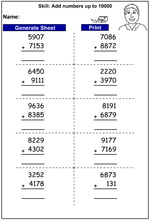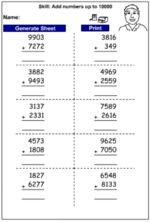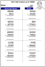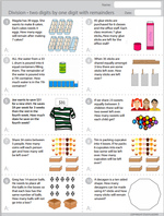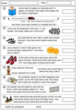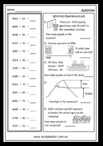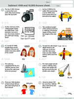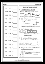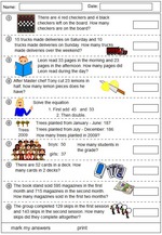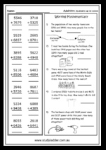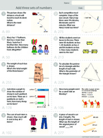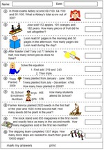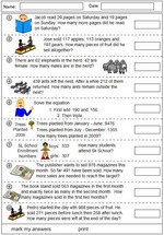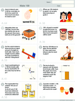 Samples: Two step problem solving. Make 100 Answer sheet. Challenge puzzle. Addition of large numbers (puzzle).