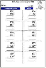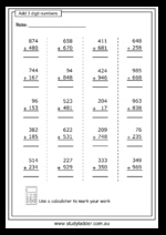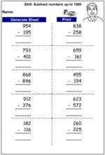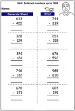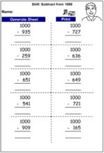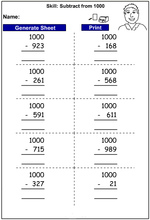 Samples: Subtracting three digit numbers. Subtracting from multiples of one thousand.