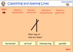 Samples: Identifying types of lines. Types of angles. Naming angles within shapes. Identifying lines.
