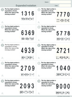 Samples: Expanded notation (to 10,000). Comparing numbers to 1000 (< = >). Write numbers – to 1000.